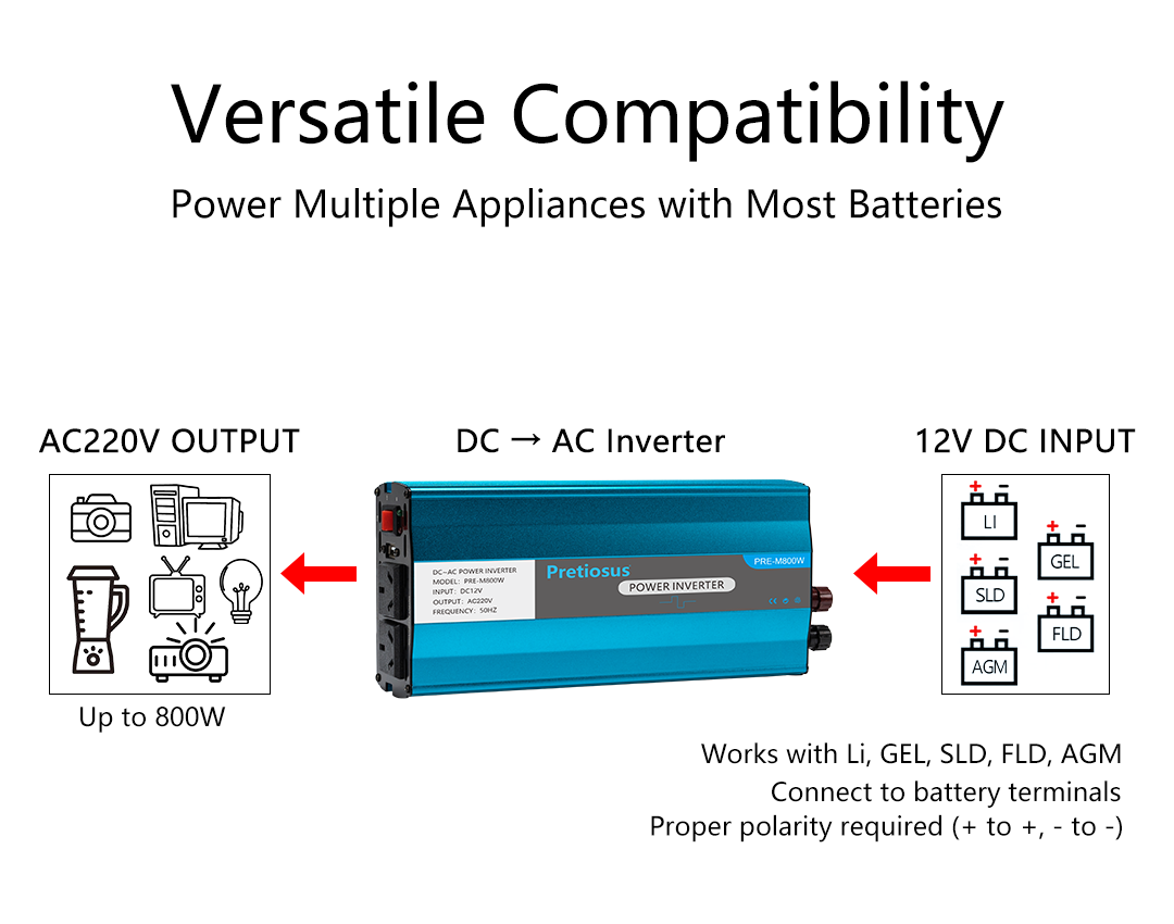 PRE-M800W DC12V TO AC220V 50Hz