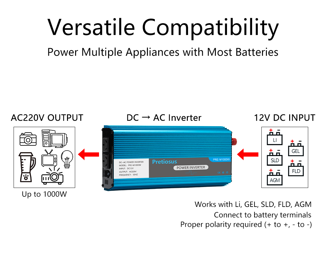 PRE-M1000W DC12V TO AC220V 50Hz